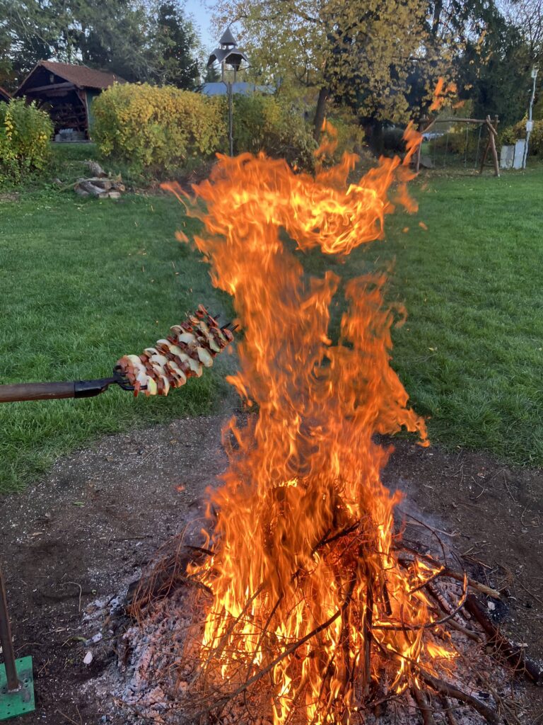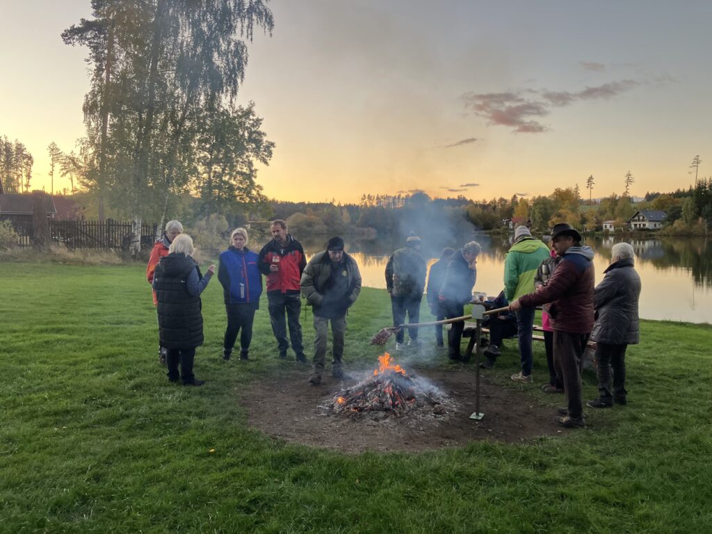Ještě uprostřed podzimu přálo počasí natolik, že si skalní osadníci zpříjemnili sobotní odpoledne ohýnkem na pláži. Buřty na vidlích nemohly chybět.